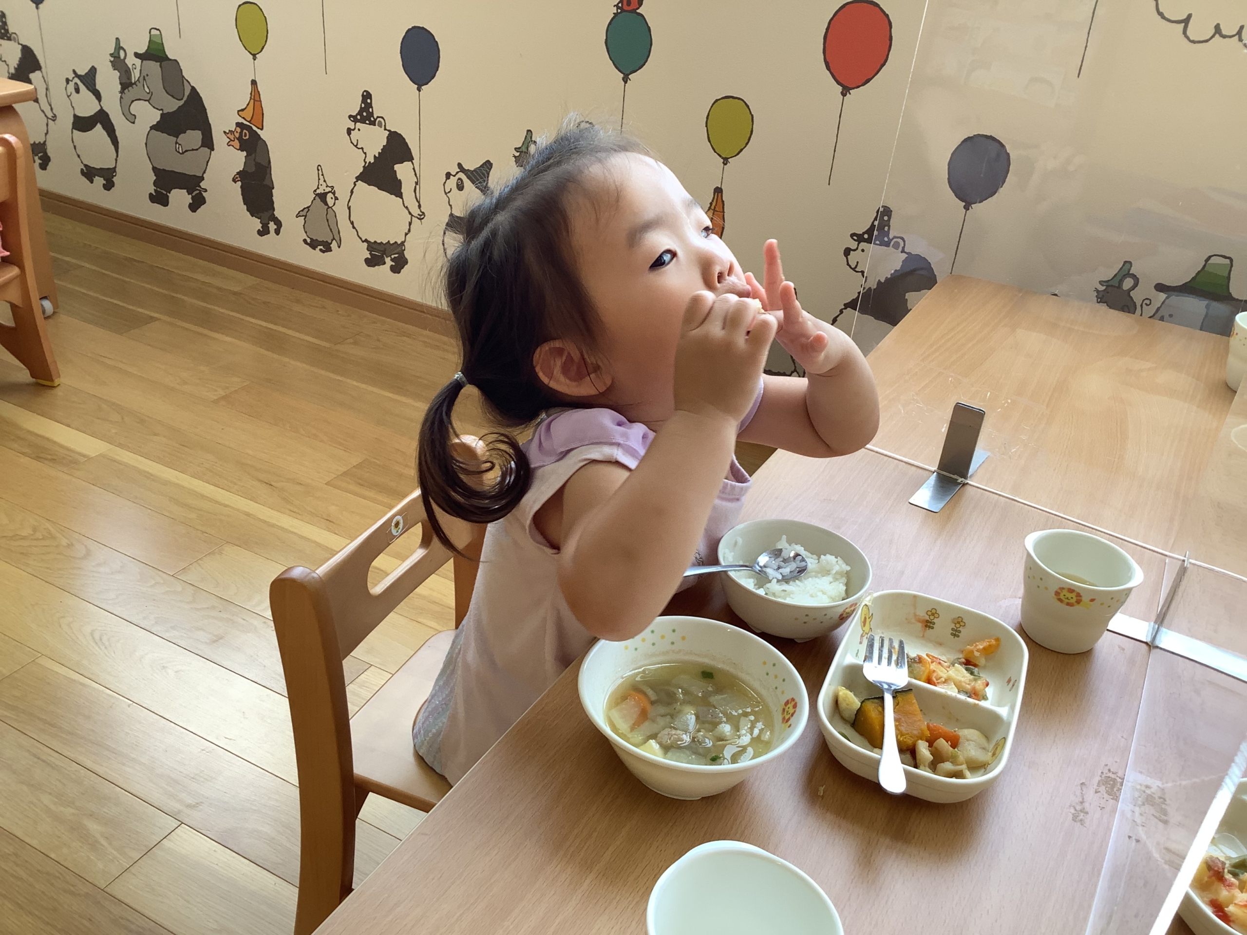 苦手なお野菜でも、一口、二口と頑張ってるお友達もいましたよ👍