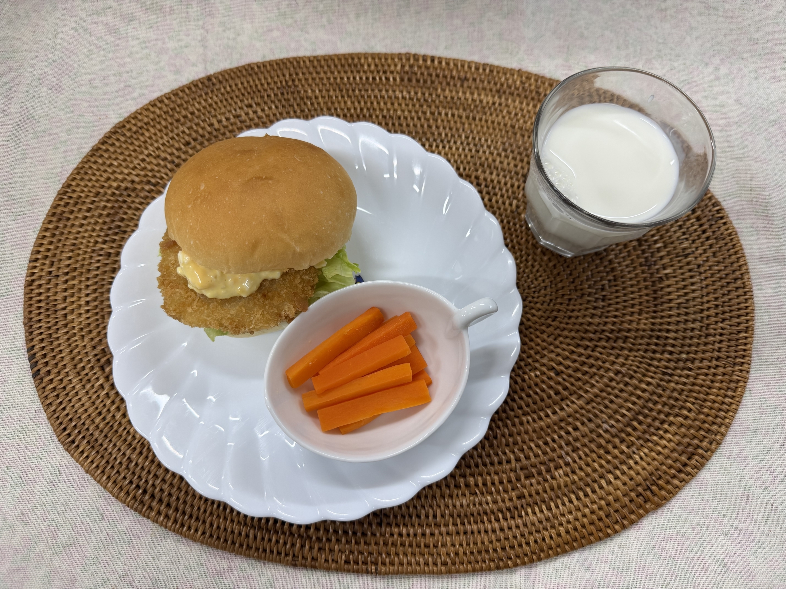 2026/02/10 今日の給食 2月10日の給食です。 今日の献立です。 ・自分で作る フィッシュバーガー ・タルタルソース ・レタス&スティック人参 ・牛乳 今日のおやつは「ぬれせんべい」でした。 前のページ