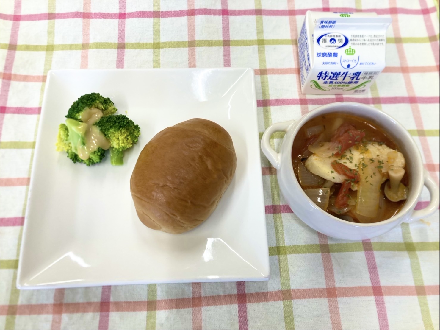 2026/02/17 今日の給食 2月17日の給食です 今日の献立は ・黒糖パン ・魚のトマトスープ煮 ・茹でブロッコリー(味噌マヨソース付き) ・牛乳 でした おやつは「ごぼうクッキー」です ごぼうを粗みじん切りにし、たっぷりクッキー生地に混ぜ込んで焼成しています♪ 食物繊維も豊富で、ごぼうの食感で歯固め効果もあるクッキーです 前のページ