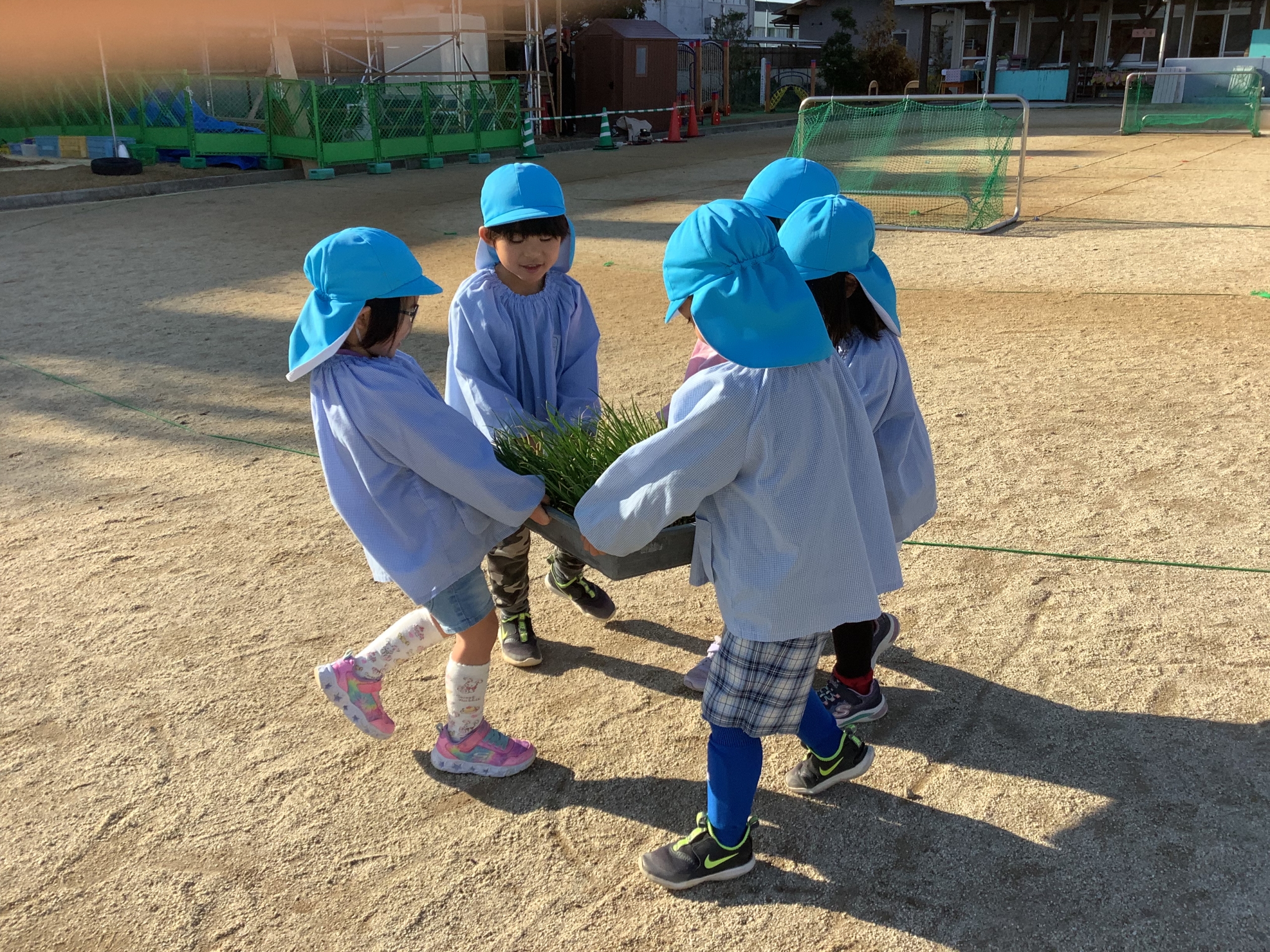 2021/12/15 今日の1枚 今日のすみれ組♪玉ねぎ苗植え🧅 先日いただいた玉ねぎ苗🧅種類は4種類😊 畑まで、みんなで力を合わせて運びます💪✨ 自分たちで穴を掘って植えます🌱 最後にはみんなが考えたおまじないの言葉を❤️ 「大きく、おいしくな〜れ!!!!!」 おまじない、届いたかな??生長が楽しみです😄 2021/12/15 今日の1枚 避難訓練 避難訓練を行いました。 「避難訓練です。地震です。」の放送を聞いた子ども達は、ダンゴムシのポーズになって、机の下に隠れていました。 揺れがおさまると、外へ避難です。 すると、火事も発生しました。😖先生の話をしっかり聞いて、上手に避難することができました。💮 毎月行われている、避難訓練!命が守れるように、しっかり取り組んでいきたいです。 2021/12/15 今日の給食 12月15日の給食です 今日の献立は ・みそラーメン ・野菜炒め ・杏仁豆腐 おやつは「チーズスコーン・牛乳」でした♪