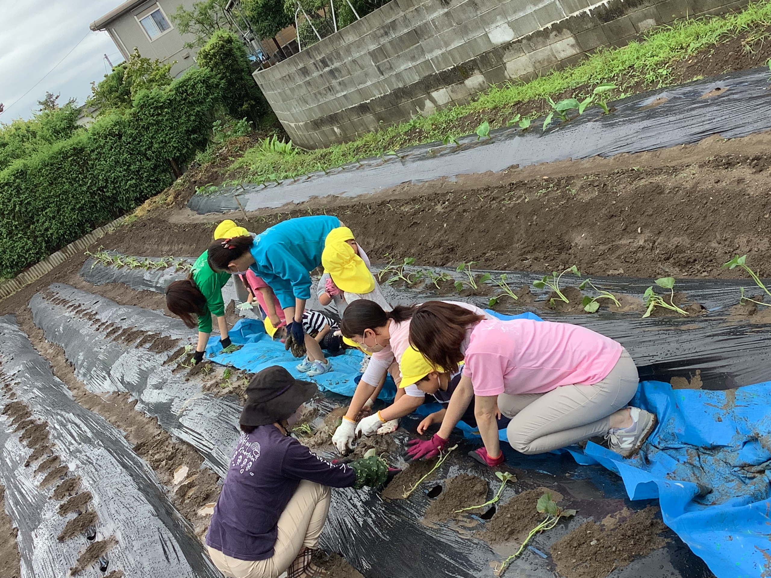 さあ!秋においしいお芋を食べるために、大事な芋の苗植えをしました🍠