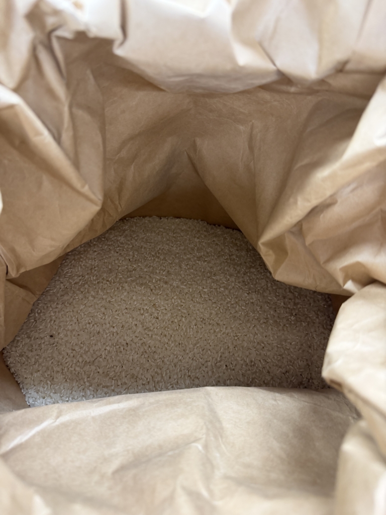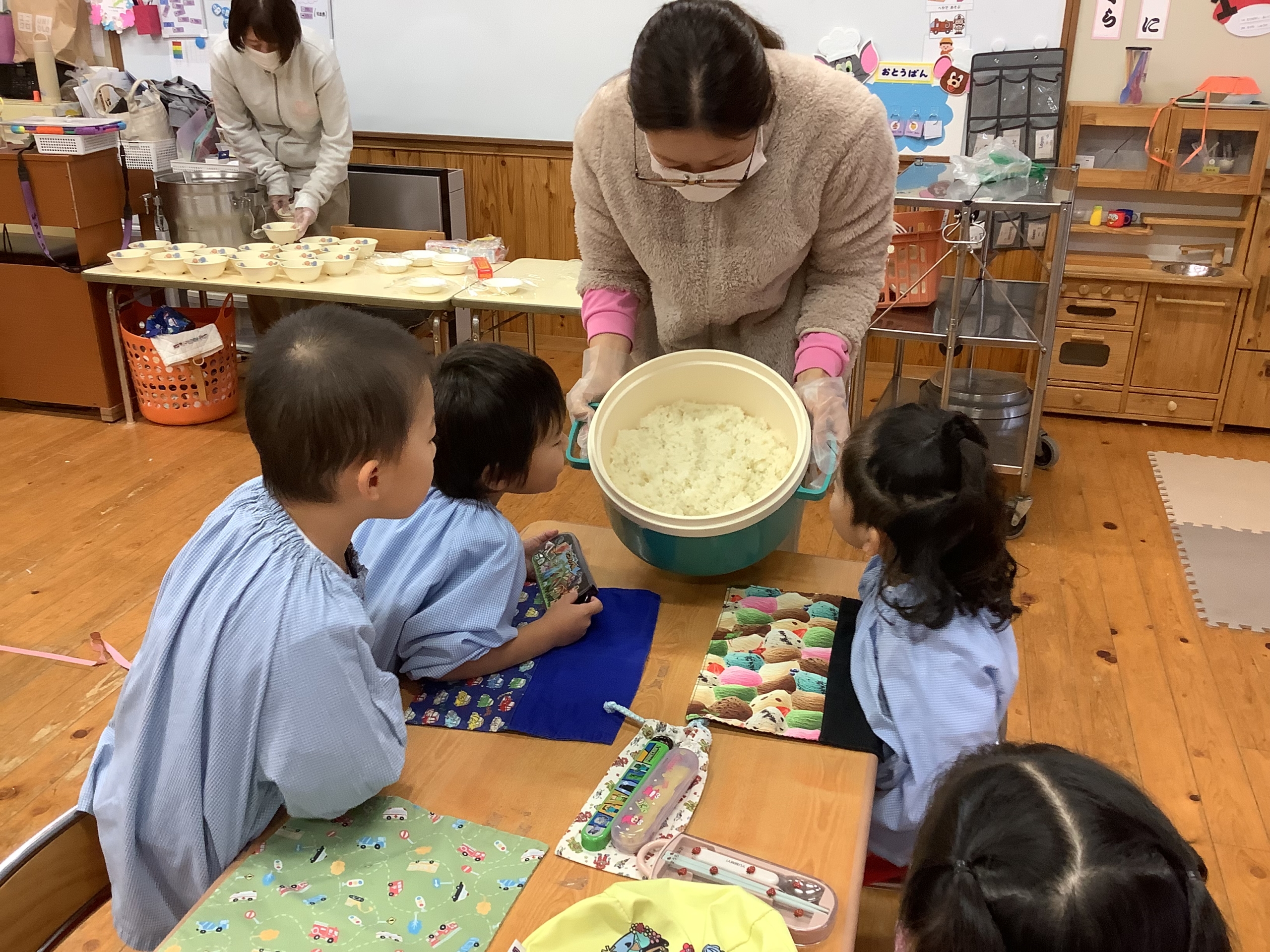 給食の時間に合わせて、真っ白なお米が届きました🍚