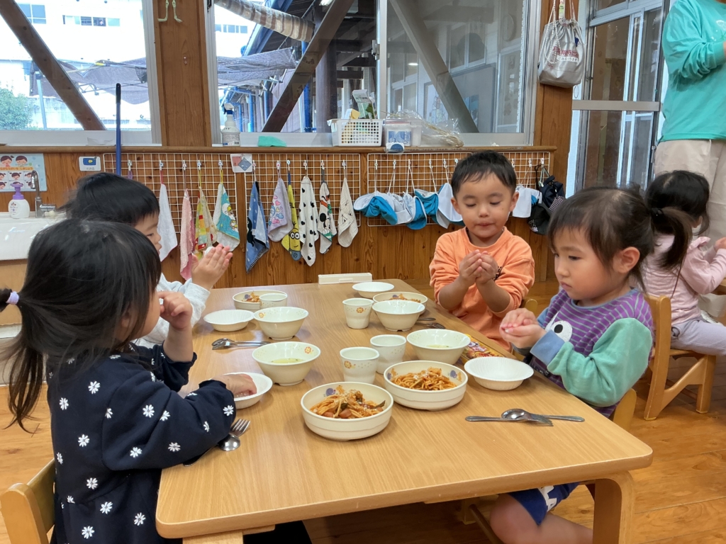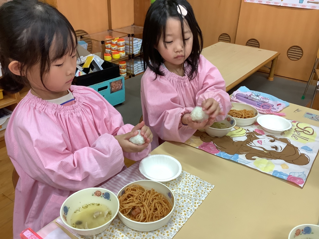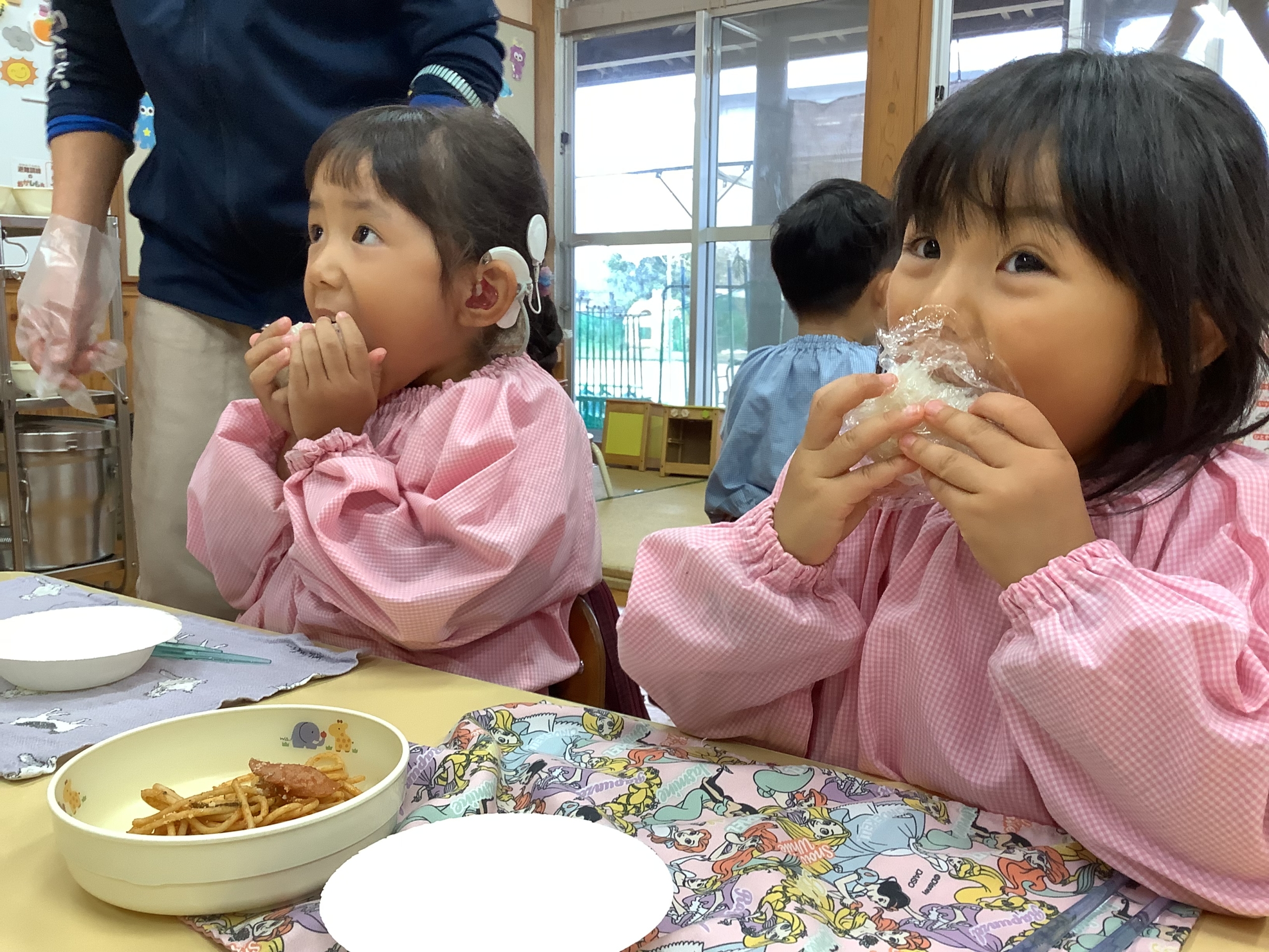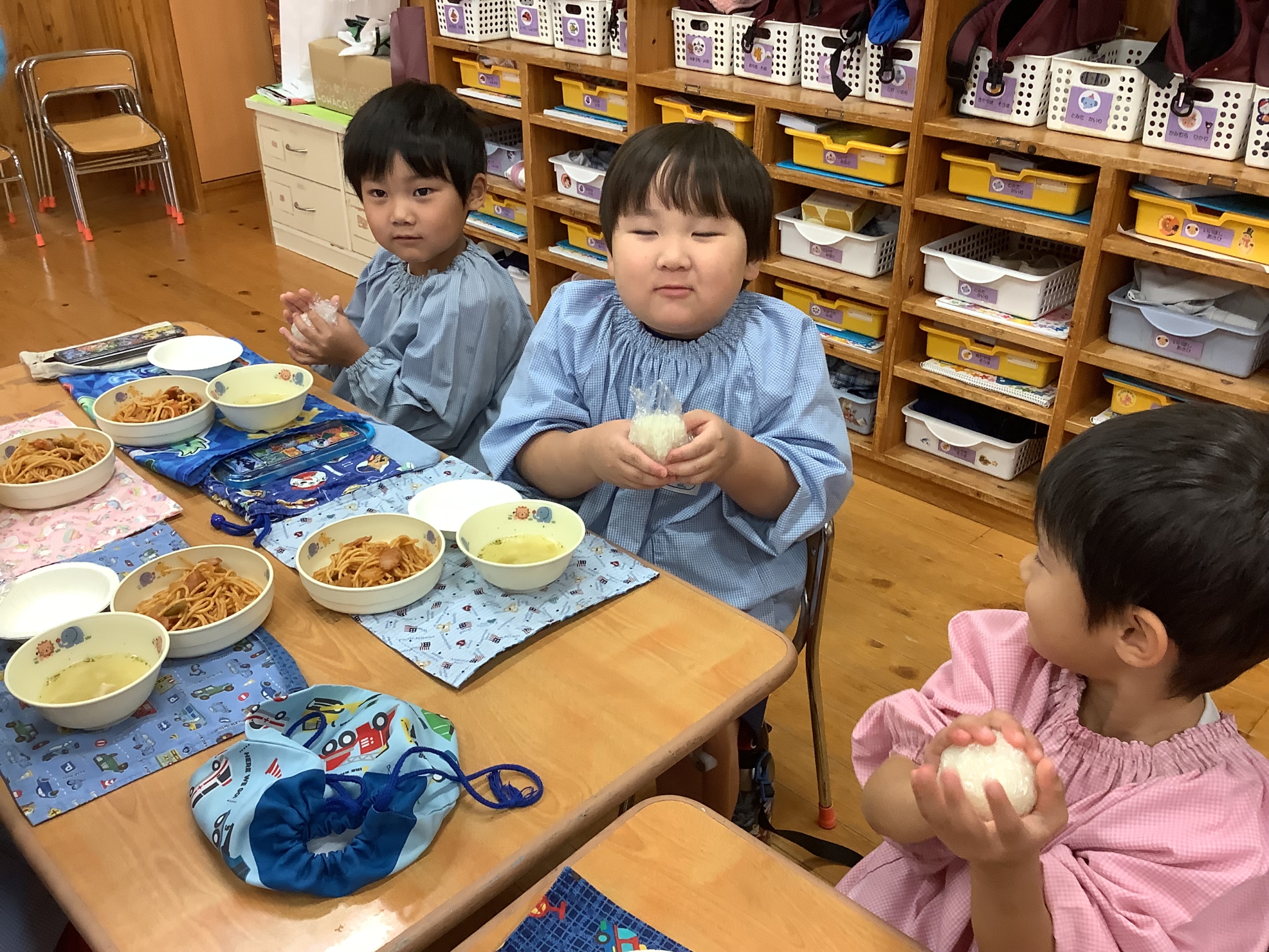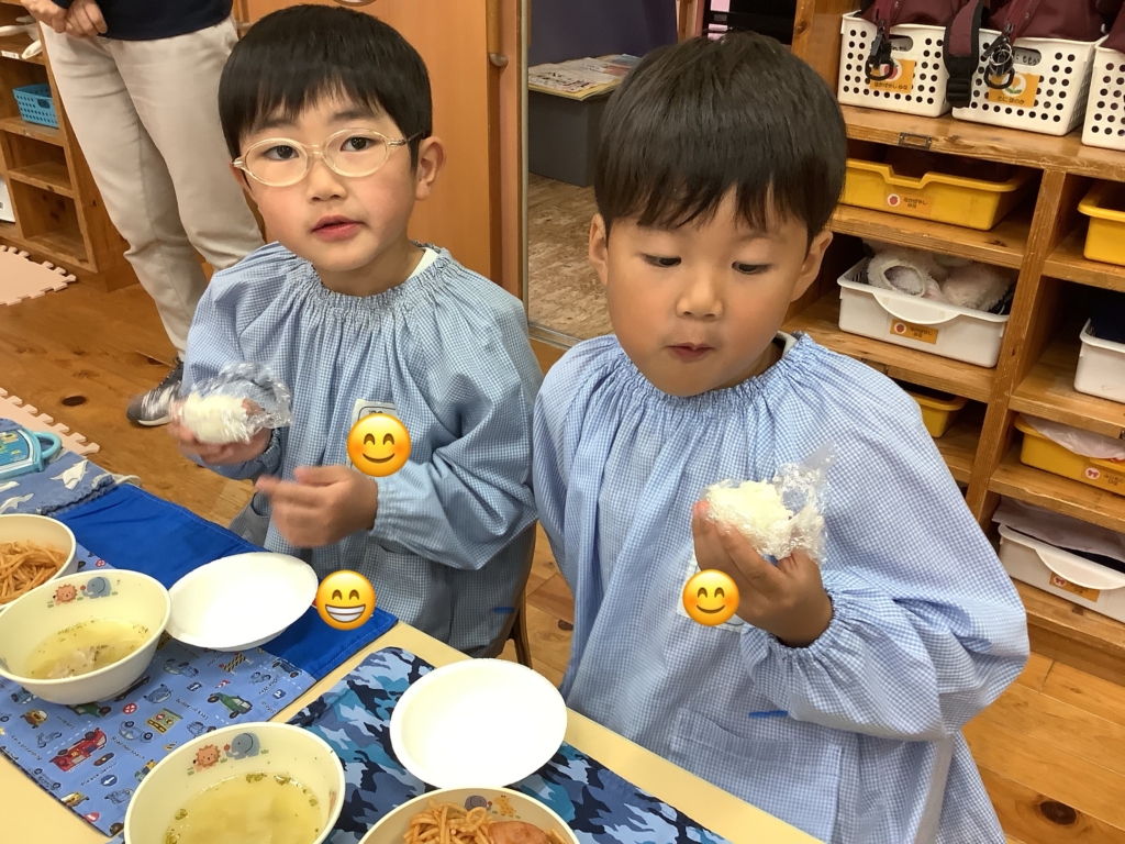 そして「いただきます」の掛け声で、自分で作ったおにぎりを食べました😊