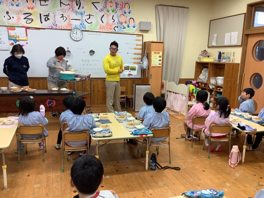 さくら組さんが稲刈りをしたお米で収穫祭を行いました。