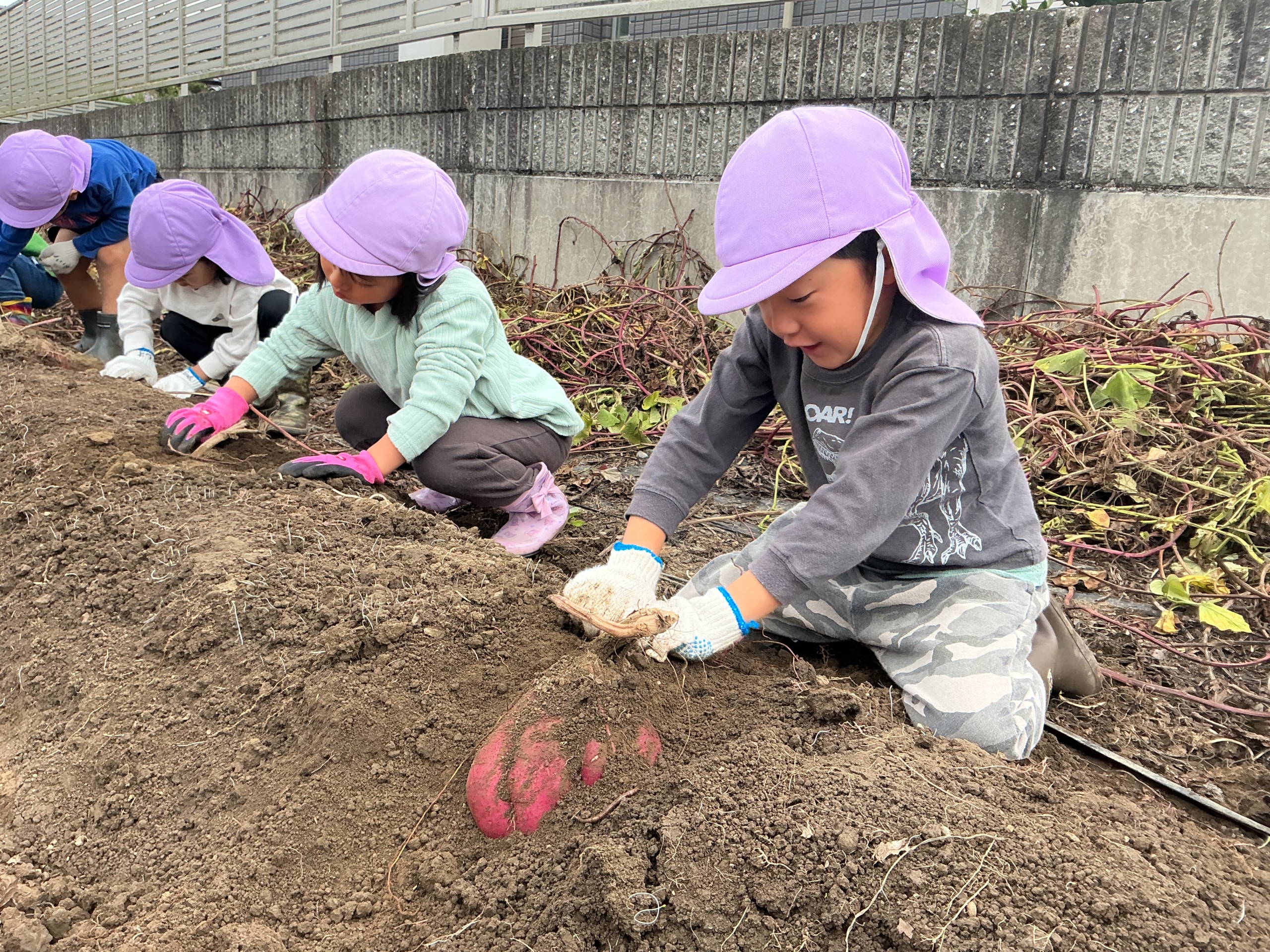 5月に植えた芋の苗。先日、ときわ幼稚園の年中さんと一緒に収穫に行って来ました✨
