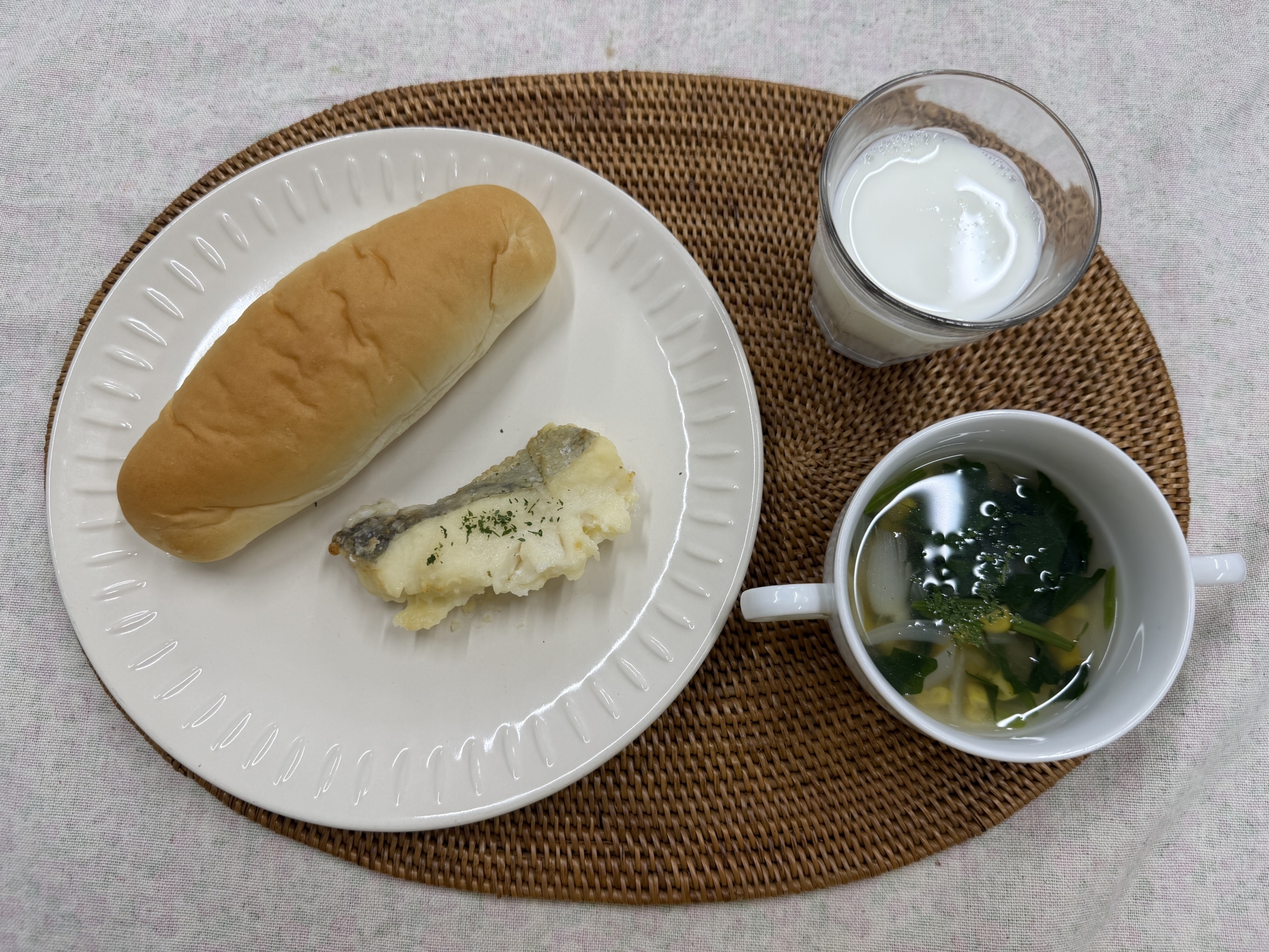 2026/04/23 今日の給食 4月23日の給食です。 今日の献立です。 ・コッペパン ・魚のバターソテー ・ほうれん草のスープ ・牛乳 きょうのおやつは「きな粉バナナ」でした。 前のページ 次のページ