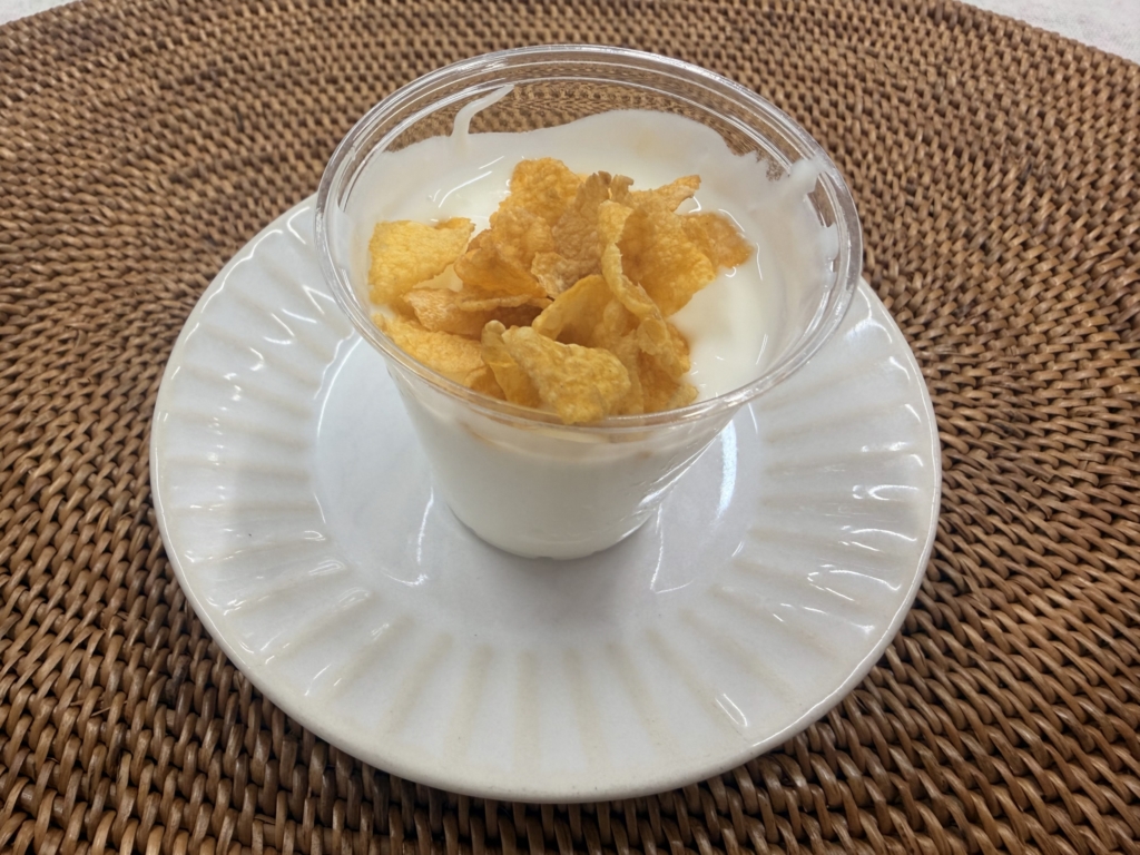 ・今日のおやつは「フレークヨーグルト」でした。